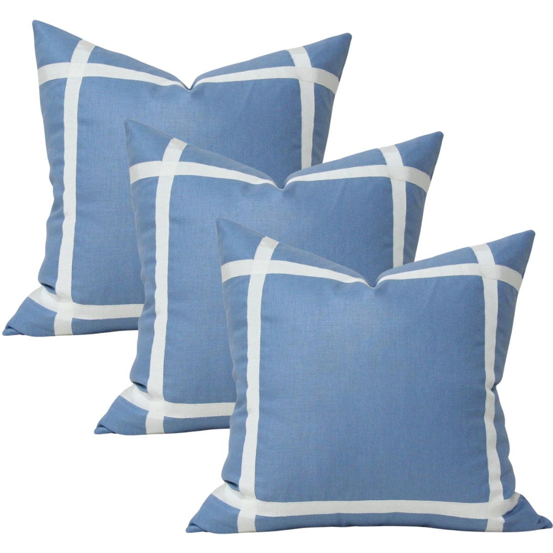 Hampton Blue Glazed Linen with Off-White Ribbon - Set of 3
