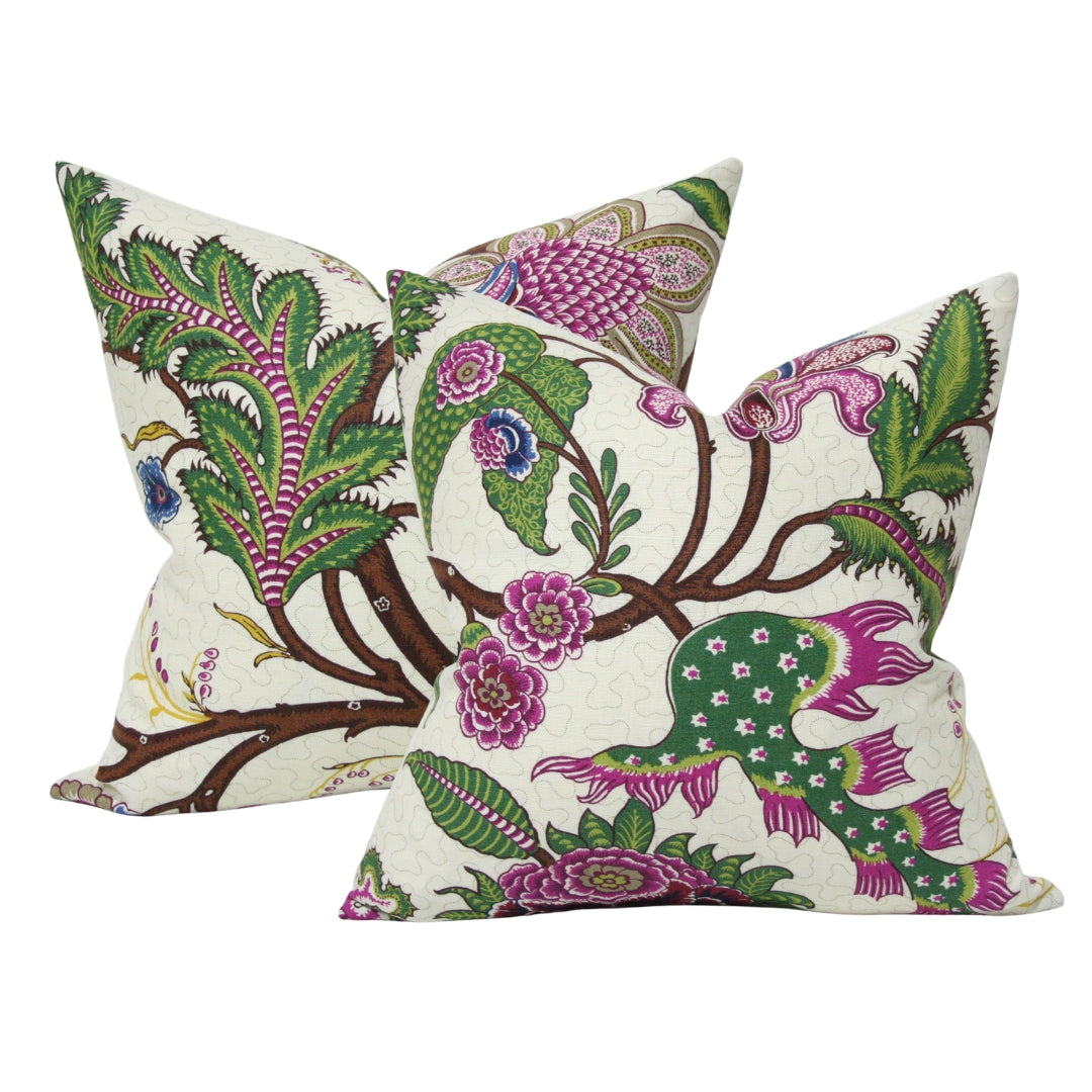 • Due to the large pattern repeat of the fabric, specific pattern placement on each pillow will vary.
