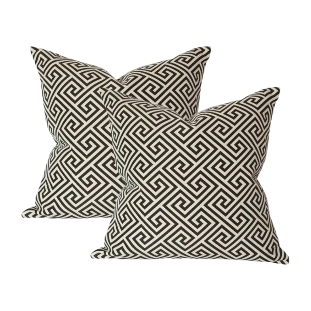 An elegant pillow in a classic greek key pattern. Also available in Navy